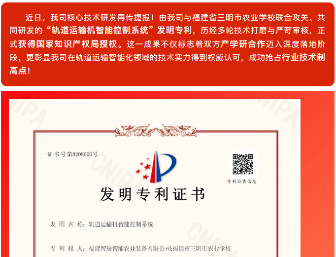喜报!福建智辰再添硬核发明专利——校企合作“轨道运输机智能控制系统”重