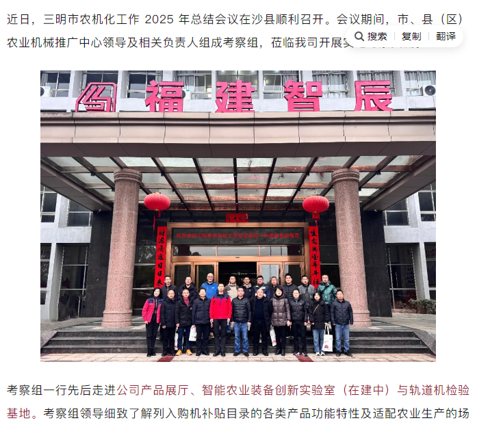 三明市农机化工作会议领导莅临福建智辰指导工作