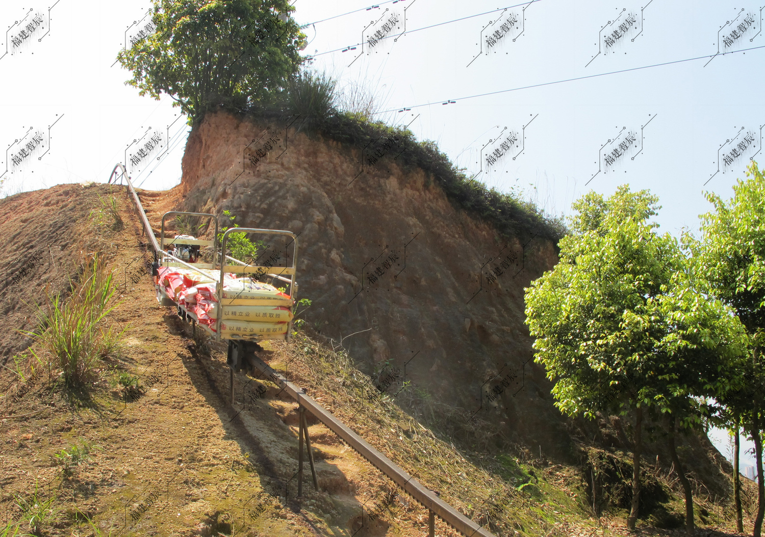 降低劳动强度,提高劳动效率,减轻丘陵山区果实和农资的运输成本,产品可以不受地形、坡度、土质的影响,自由铺设轨道实现方便、安全、灵活的山地狭小空间运输。